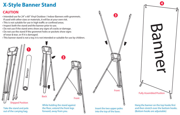 The X-style banner stand offers a great looking display at an economical price. A black nylon bag is included.